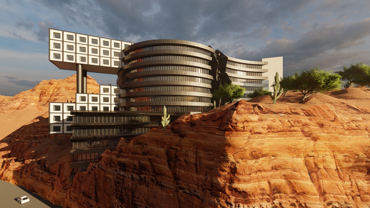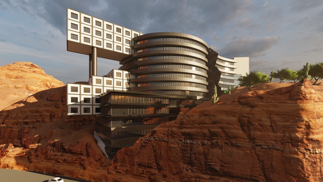 Set within the breathtaking landscape of Petra, one of the world’s most celebrated wonders, this proposal envisions a modern hotel that harmonizes contemporary design with the timeless beauty of its surroundings. The architecture emphasizes clean lines, open spaces, and natural integration, ensuring that the structure complements rather than competes with the historic site. Guests are welcomed into an atmosphere that blends luxury with cultural reverence, offering a serene retreat amidst the ancient sandstone formations.